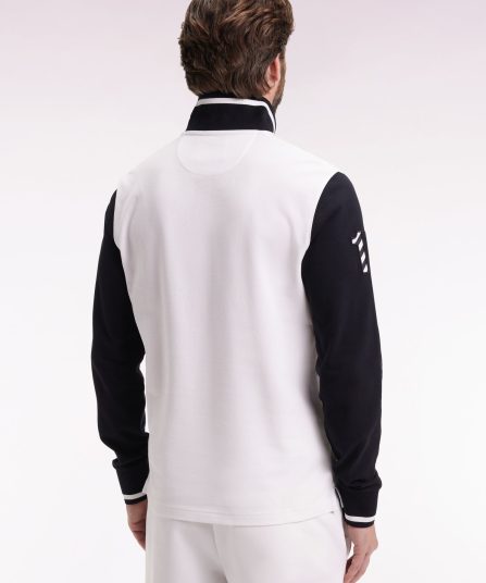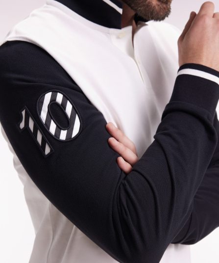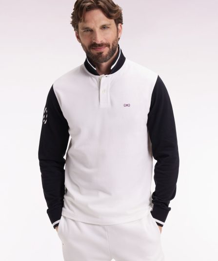 En coloris ciel, rose ou blanc à manches longues noires, ce polo masculin apporte une note de contraste aux tenues les plus simples. Réalisé dans un piqué de coton doux et résistant, il arbore une coupe droite promesse de confort. Un essentiel comportant sur la manche la broderie 10, code propre à notre maison rehaussé par un tissu cravate à rayures rugby. Le soin apporté aux finitions de ce polo reflète notre exigence en matière de style et de qualité.
