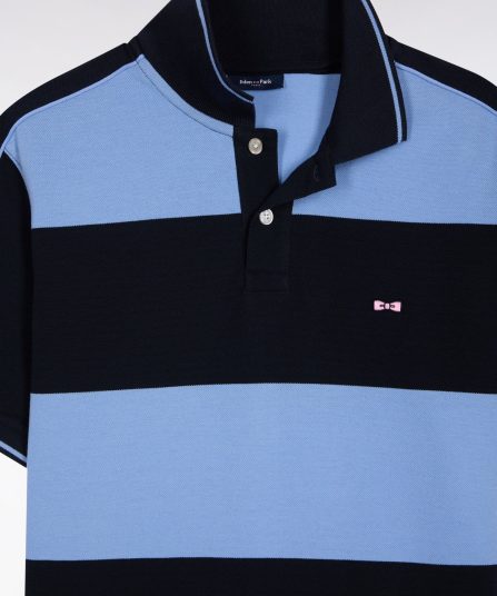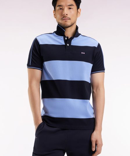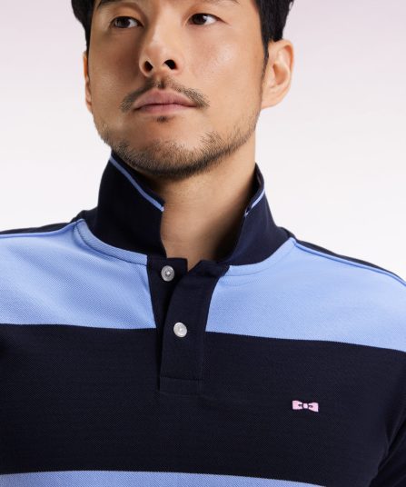 Polo cerclé en piqué coton à manches courtes en coton bleu