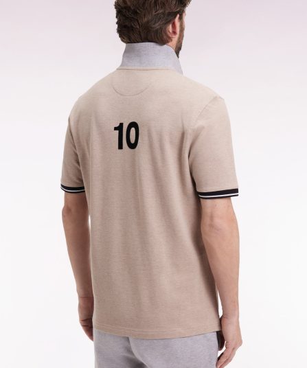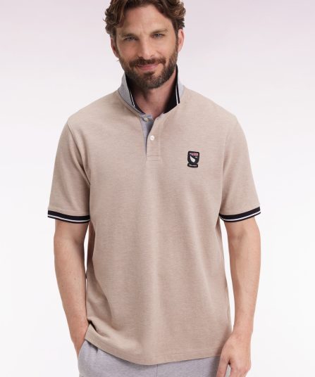 Ce polo Nouvelle Zélande, offert en gris ou en beige, arbore dans le dos un flocage « 10 » rappelant le maillot porté par notre fondateur lors de ses matchs d’anthologie. Sur l’avant, ce modèle se distingue par son écusson hommage à la Nouvelle Zélande, terre où le rugby est le roi des sports. Col polo et bordures de manches en bords-côtes rayés ajoutent au graphisme de ce polo à la coupe légèrement ample pour plus de confort