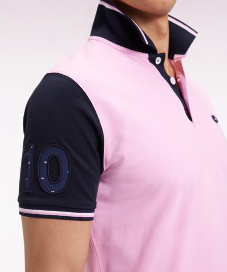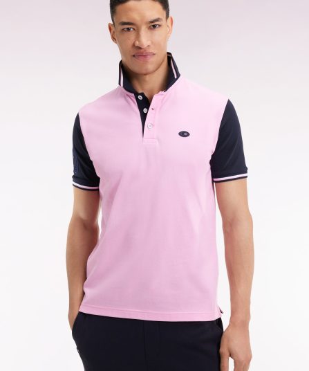 Disposant de bordures de manches et de col rayées tricolores, ce polo masculin assure une allure élégance aux influences sportives. Monochrome en marine ou disposant de manches contrastées dans sa version rose, ce polo à manches courtes sait se faire remarquer