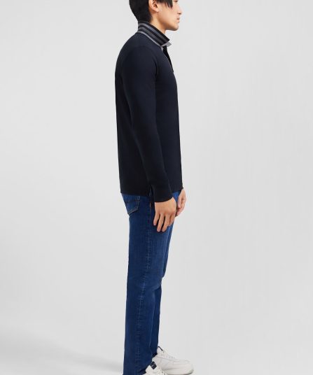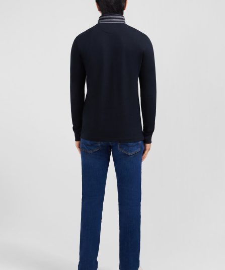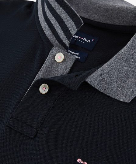 - Col polo contrasté avec sous-col rayé