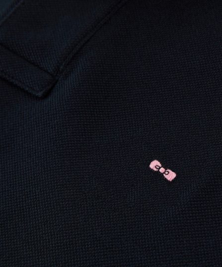 - Écusson logo nœud papillon rose brodé poitrine.