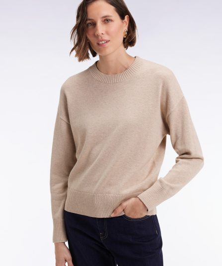 Ce pull col rond en laine et coton allie douceur et légèreté. Sa coupe légèrement ample, plus décontractée, est soulignée de finitions bords-côtes, pour une allure soignée au quotidien et un tombé impeccable sans compromis sur le confort. Un essentiel facile à coordonner.