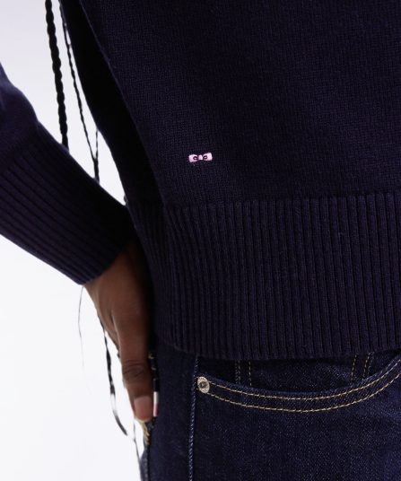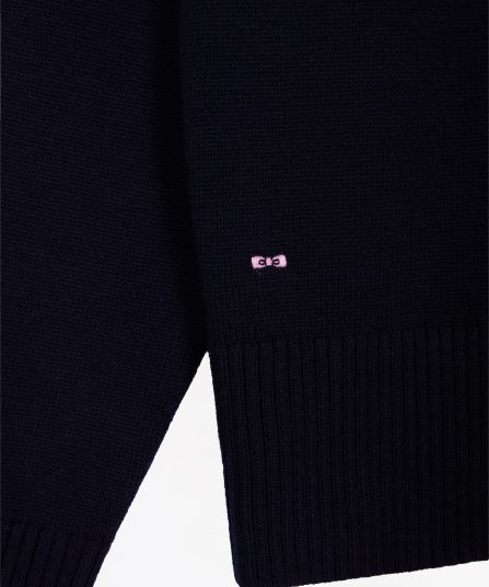 Pull à col V en laine et coton marine coupe Relaxed