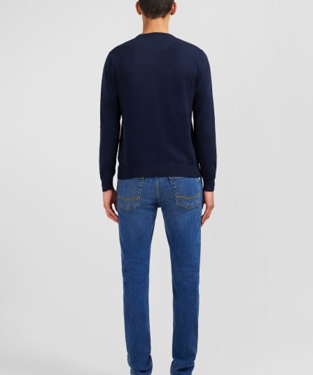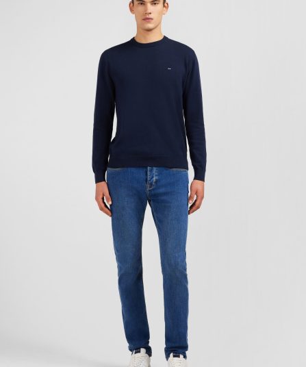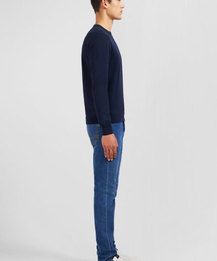 Classique mais infiniment chic, l’incontournable pull à col rond se taille une place de choix dans votre vestiaire de saison. Confectionné en jersey de coton, ce modèle promet douceur sans faille, confort parfait et élégance discrète. Portez-le version décontracté à même la peau, ou plus habillée sur une chemise unie.