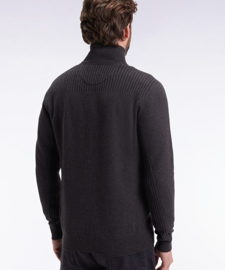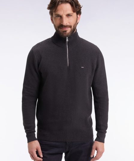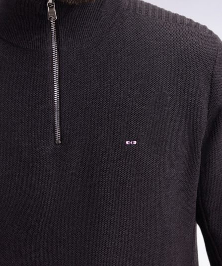Tricoté dans un coton nid d’abeille pour une texture subtile et légère, ce pull camionneur à col zippé se distingue par son tricotage en côtes sur les côtés, les épaules et le dessous de manches. Son col montant zippé permet de moduler l’allure selon l’envie. Décliné dans une palette de coloris intemporels, il s’impose comme un essentiel du vestiaire masculin, à porter saison après saison