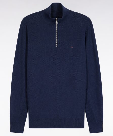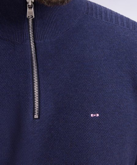 Pull col camionneur en coton nid d’abeille marine