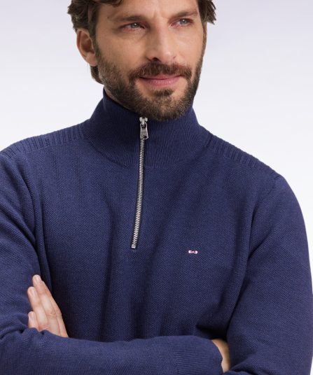 Pull col camionneur en coton nid d’abeille marine
