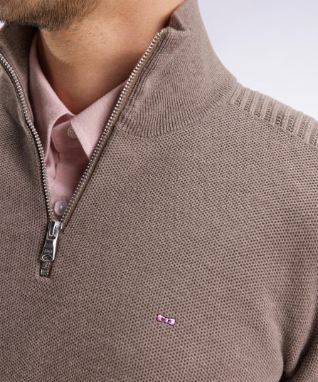Pull col camionneur en coton nid d’abeille marron