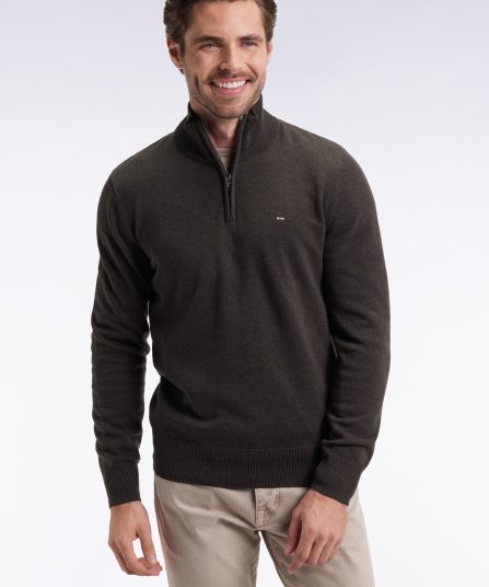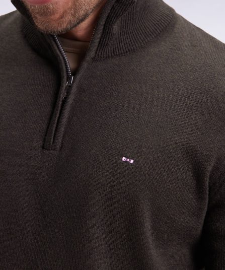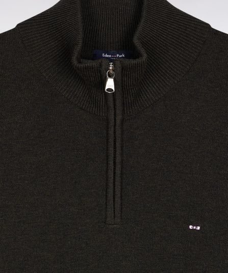 Pull col camionneur en laine et coton vert bouteille