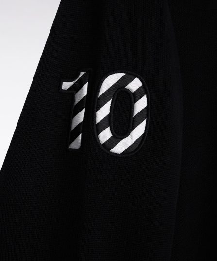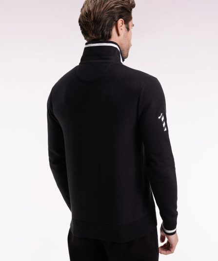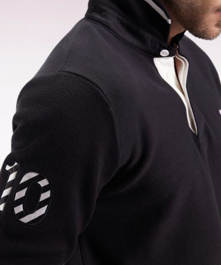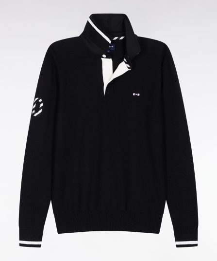 Hommage assumé à l’univers rugby, ce pull à col maillot joue sur les codes sport-chic chers à Eden Park. Dessous de col tricoté souligné d’un liseré, construction soignée avec bande de propreté en tissu cravate, rappel de sa broderie 10 sur la manche : chaque détail reflète le savoir-faire de la maison et l’amour porté au rugby. Ce pull présente une alternance de points de tricotage sur le corps et les manches pour une silhouette graphique et dynamique