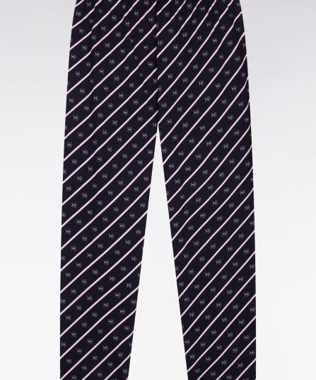 Signature graphique de la maison, le nœud papillon s’invite sur le pantalon de ce pyjama long dans un motif répété emblématique de notre vestiaire sport-chic. Associé à un T-shirt uni marine à col rond, cet ensemble pyjama confortable et tendance incarne parfaitement l’élégance du vestiaire de nuit Eden Park