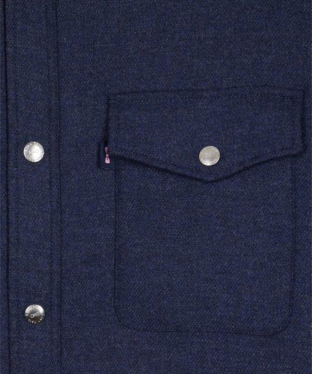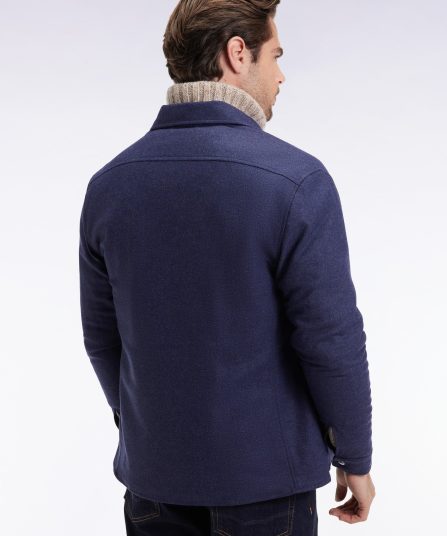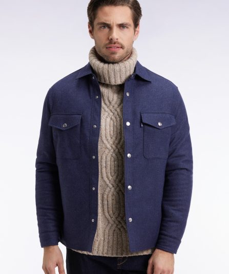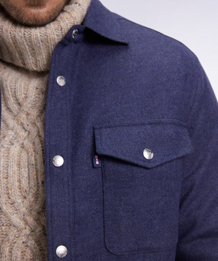 Inspirée d’une chemise en denim, cette surchemise revisite un essentiel du vestiaire masculin dans une version hivernale, plus élégante et duveteuse. Confectionnée en drap de laine et cachemire mélangés, cette surchemise homme séduit par son toucher doux et son tombé structuré. Deux poches poitrine à rabat, des boutons pression siglés et une griffe discrète ornée de notre nœud papillon emblématique complètent sa silhouette sobre et minimaliste. À porter en veste légère ou sous un manteau pour une allure sport chic, entre tradition rugby et modernité citadine