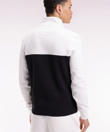 Ce sweatshirt homme doté d’un col camionneur est réalisé en molleton gratté bicolore. Décliné en combinaisons marine et rose, ciel ou blanc, il se distingue par son zip ton sur ton et sa broderie Eden Park sur la poitrine. Les poignets, le bas du corps et l’intérieur du col en bords-côtes apportent confort et structure à cette pièce d’inspiration sportive