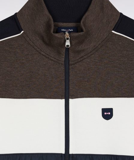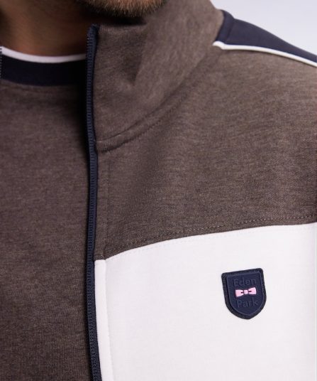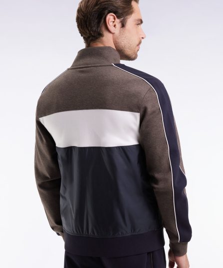 Sweatshirt zippé bimatière en nylon matelassé marron