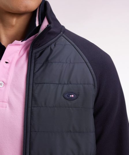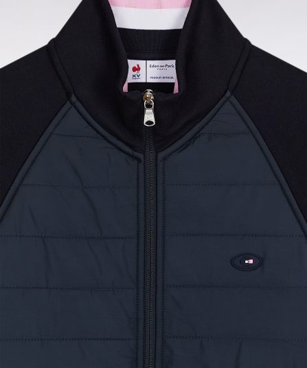 Pensé en collaboration avec la Fédération Française de Rugby (FFR), ce sweatshirt zippé allie esprit sportif et finitions haut de gamme. Conçu comme une veste légère, il se distingue par une parementure poitrine en nylon matelassé qui structure la silhouette. Confortable et protecteur, ce sweatshirt zippé bimatière se porte dès la mi-saison, pour affirmer une allure athlétique et élégante. Broderies officielles, badge FFR et détails tricolores signent cette pièce emblématique à porter bien au-delà du terrain pour une silhouette urbaine aux accents sportifs