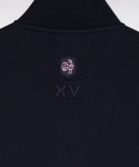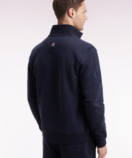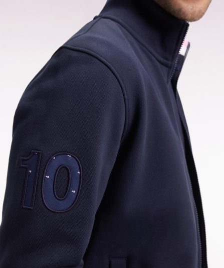 Ce sweatshirt zippé au col montant souligné d’un passepoil rose mise sur une sobriété élégante, rehaussée par des détails signature. Sur la manche, une broderie « 10 » est enrichie d’une incrustation en tissu cravate imprimé, clin d’œil au style French Flair Eden Park