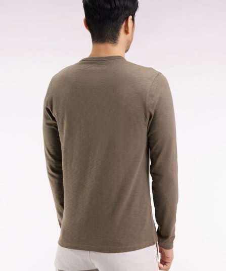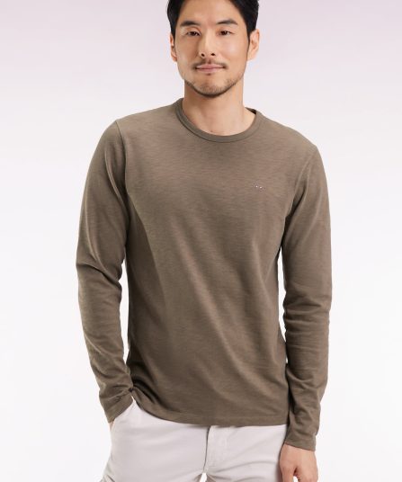 Ce T-shirt à manches longues est confectionné dans un jersey de coton slub pour un effet texturé naturel décliné dans une large palette de coloris. L’encolure en bords-côtes lui apporte tenue et confort. Un basique du vestiaire de tous les jours, à porter seul ou en superposition