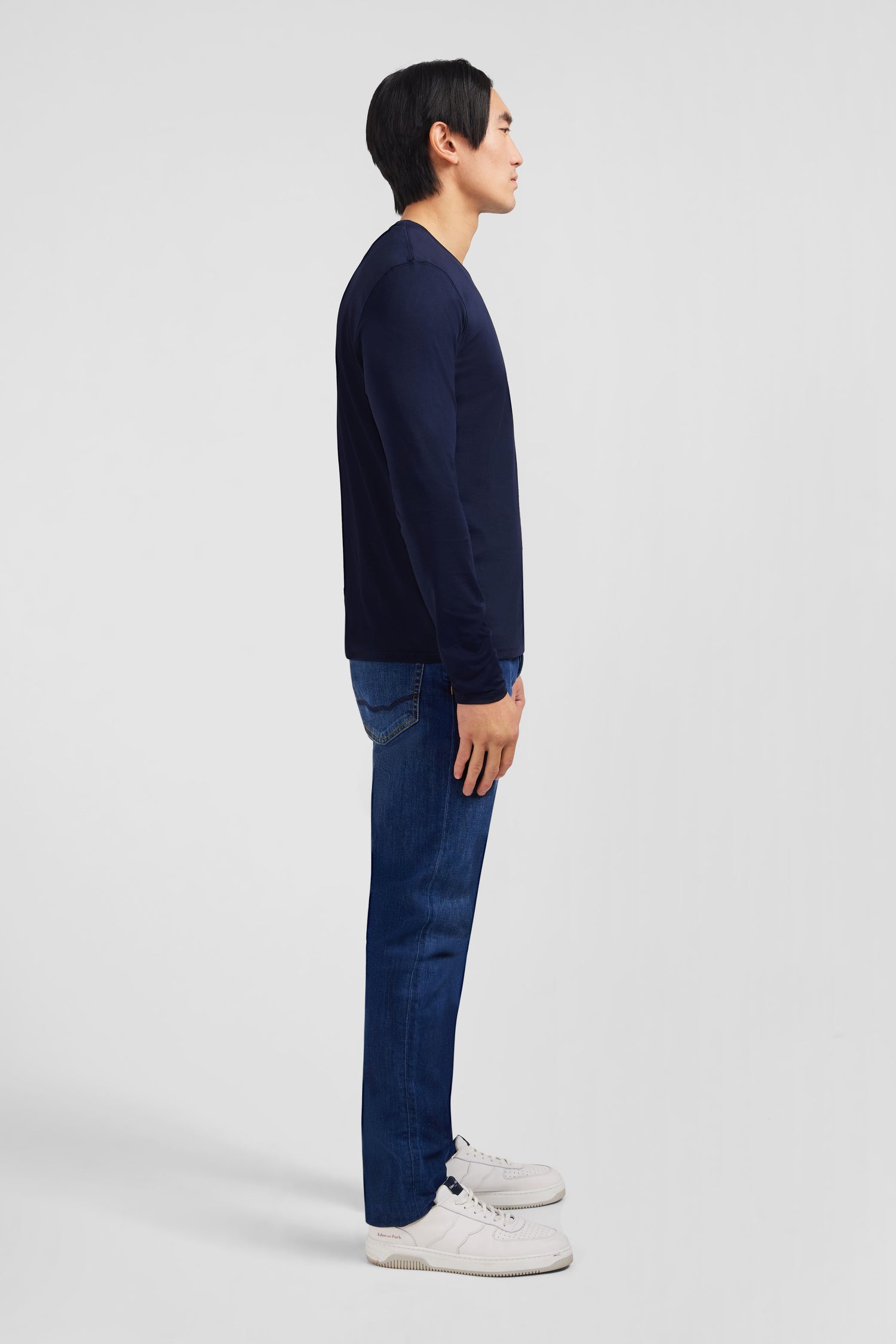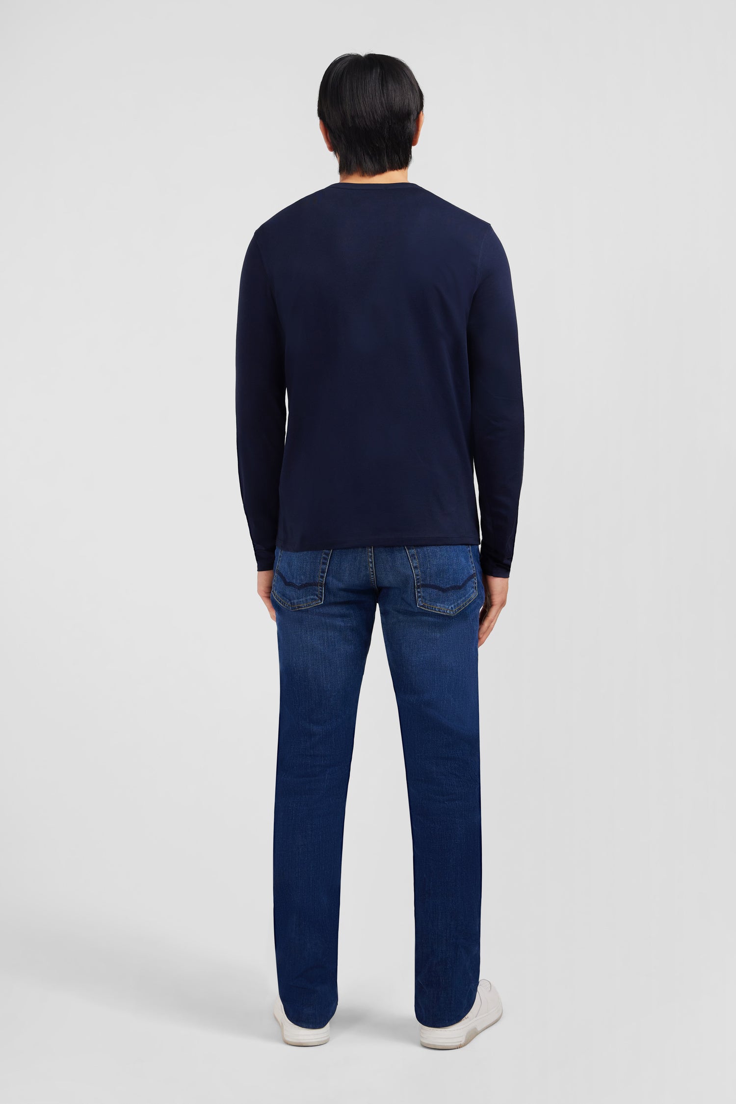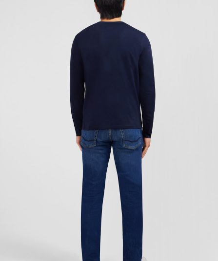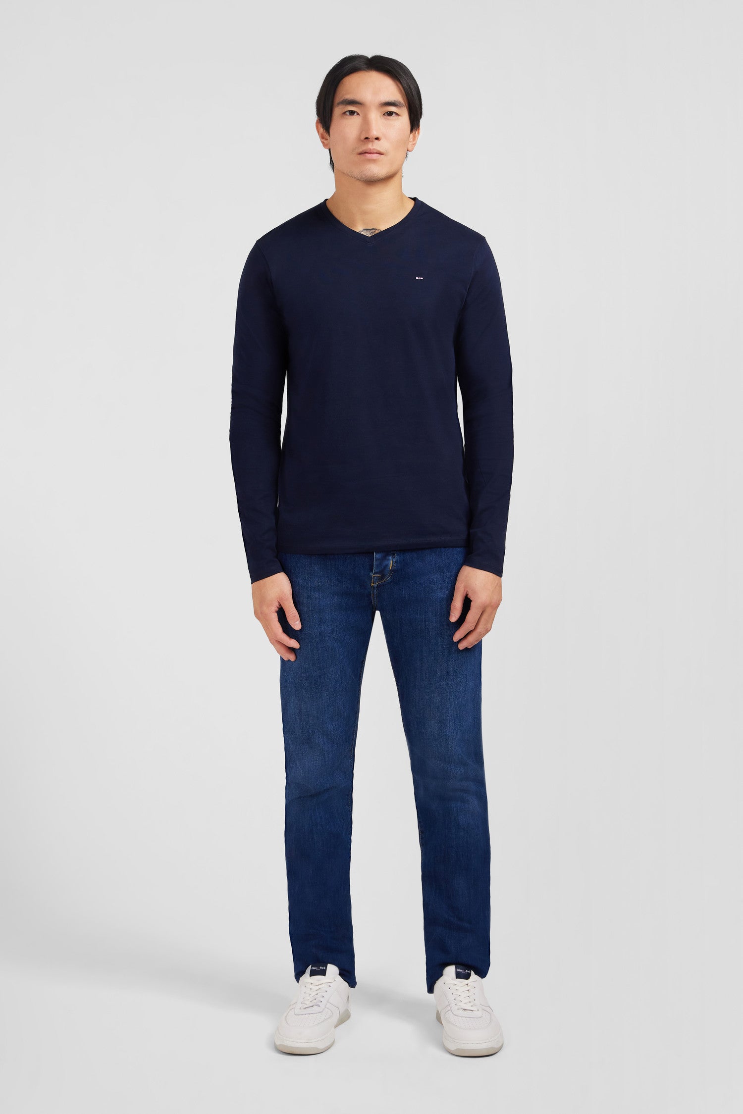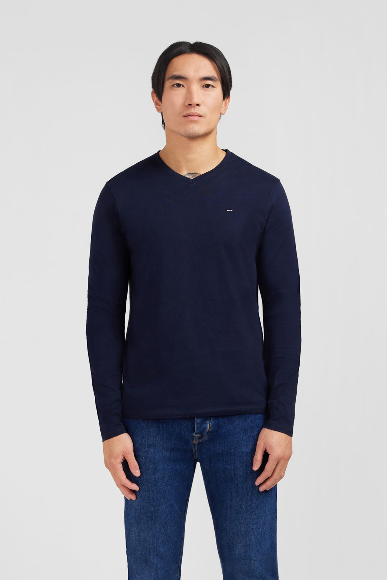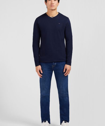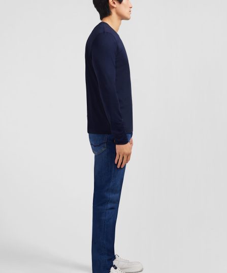 T-shirt bleu marine col V à manches longues